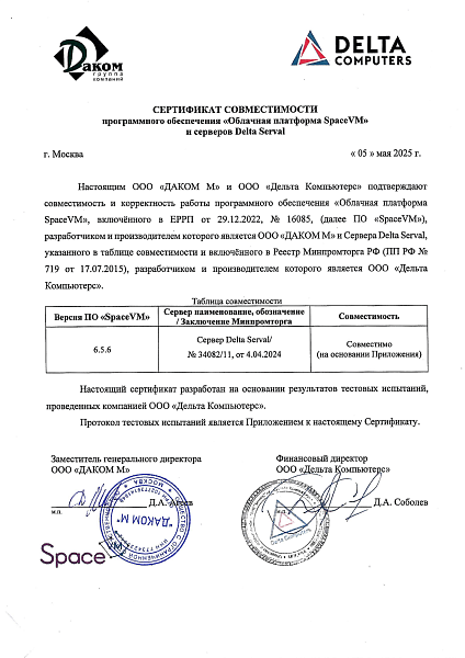 Позволяет создавать частные и публичные облака на базе серверов Delta Serval.