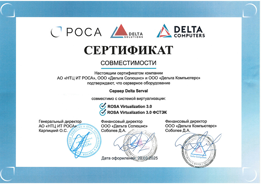 Delta Serval обладает высокой производительностью, что позволяет применять его для обработки больших данных, крупных баз данных, систем бизнесаналитики, виртуализации и других высокотребовательных приложений.