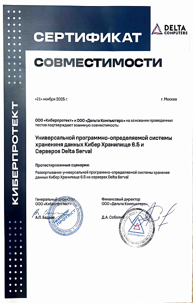 - Универсальной программно-определяемой системы хранения данных Кибер Хранилище 6.5