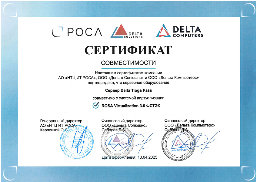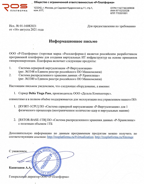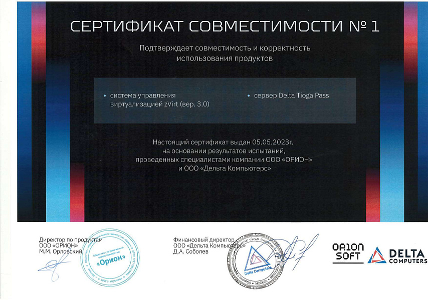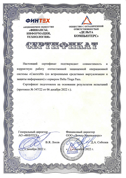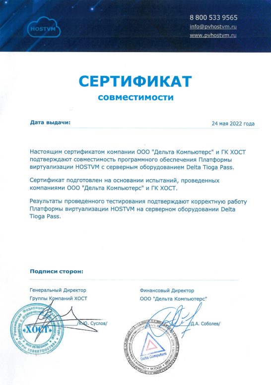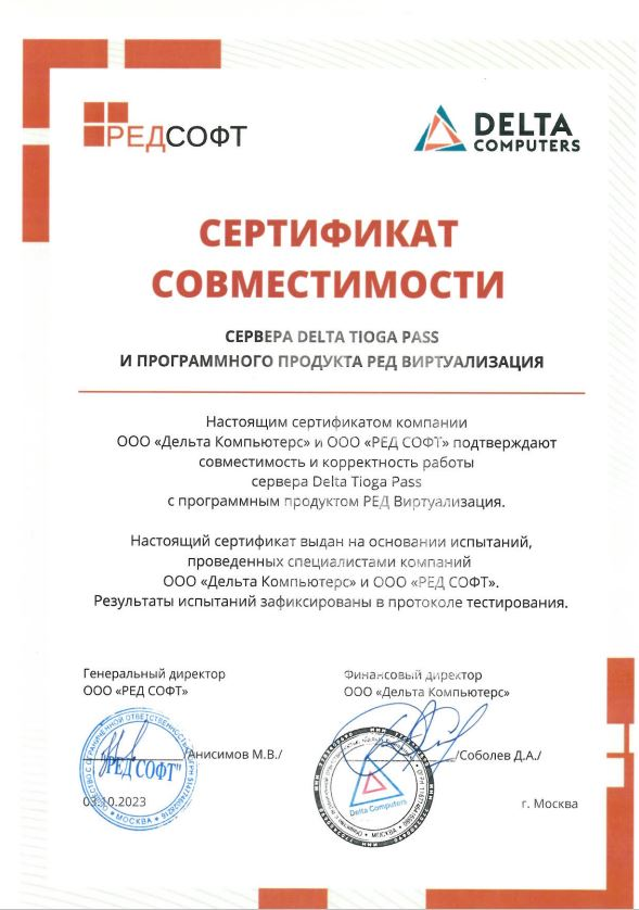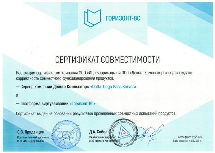 - Платформа виртуализации "Горизонт-ВС" и Сервер Delta Tioga Pass.