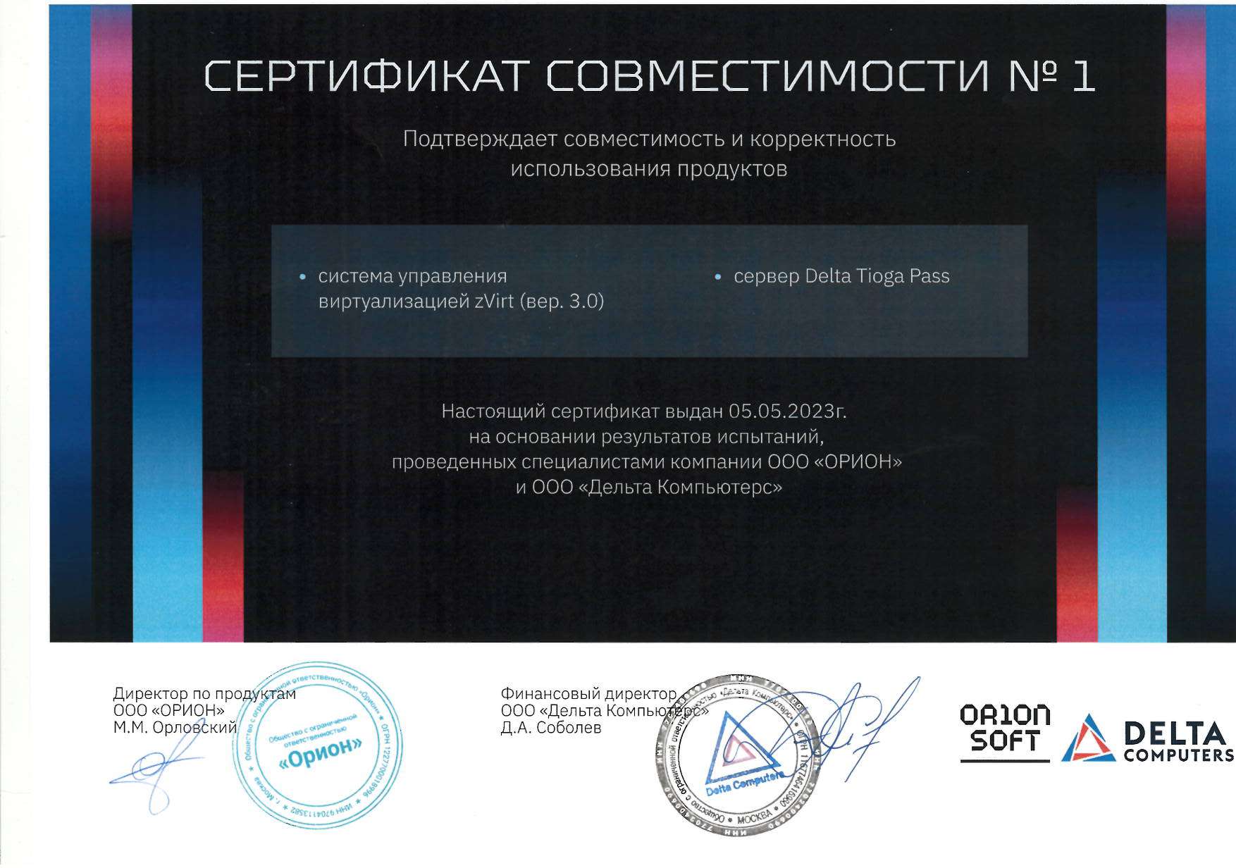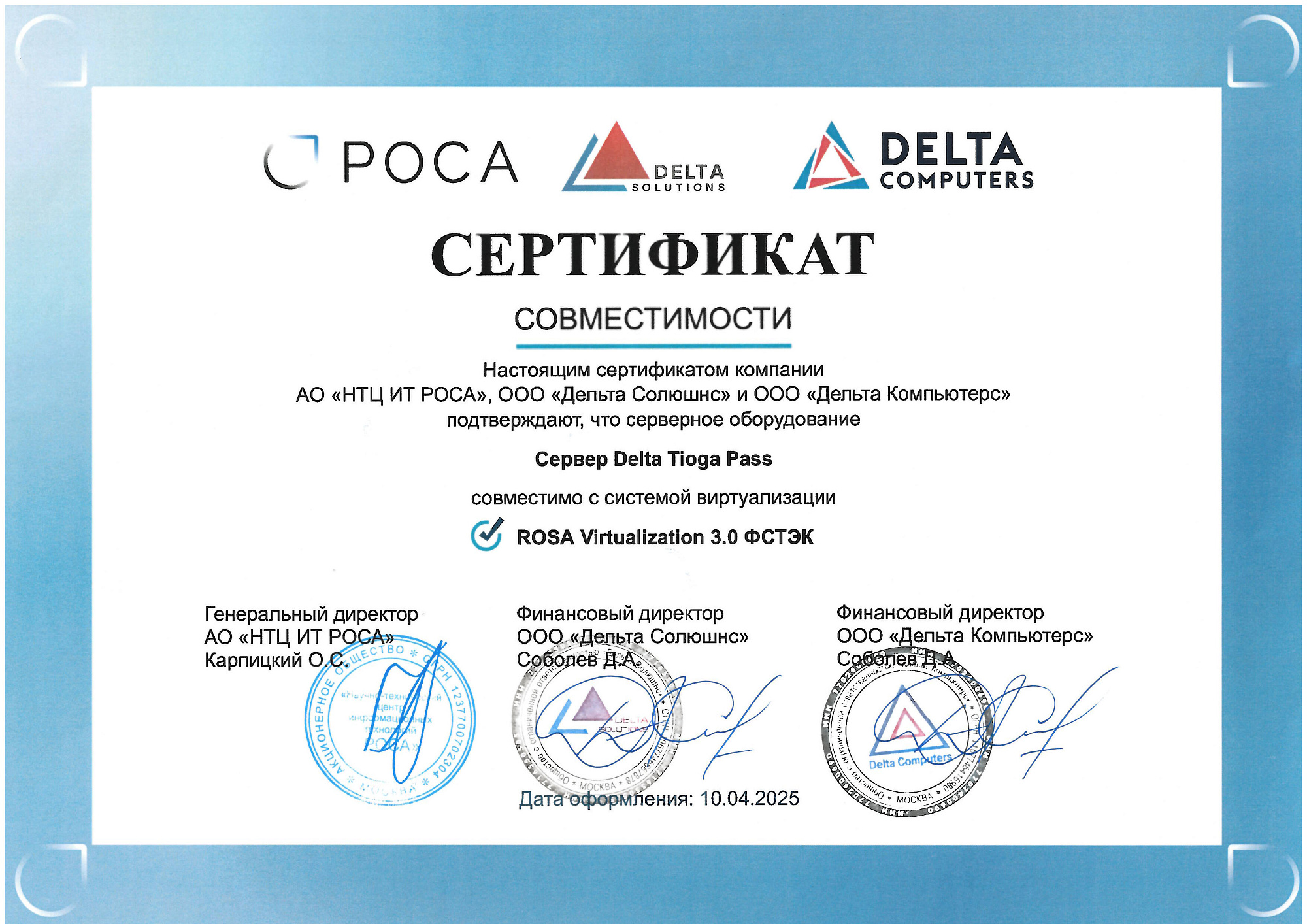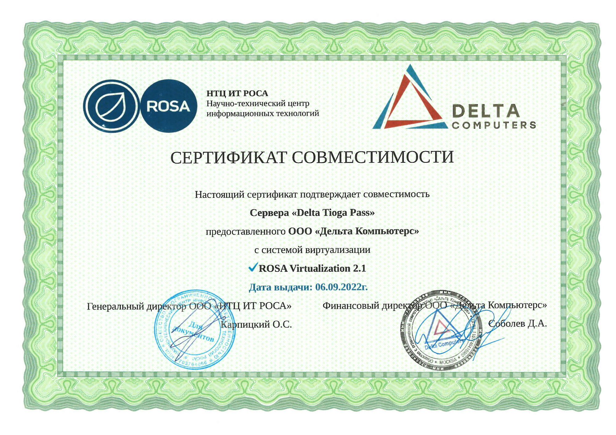 - Платформа виртуализации "Горизонт-ВС" и Сервер Delta Tioga Pass.
