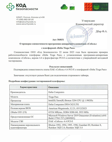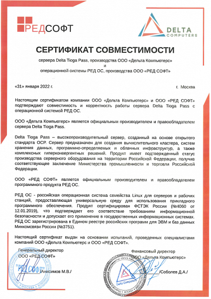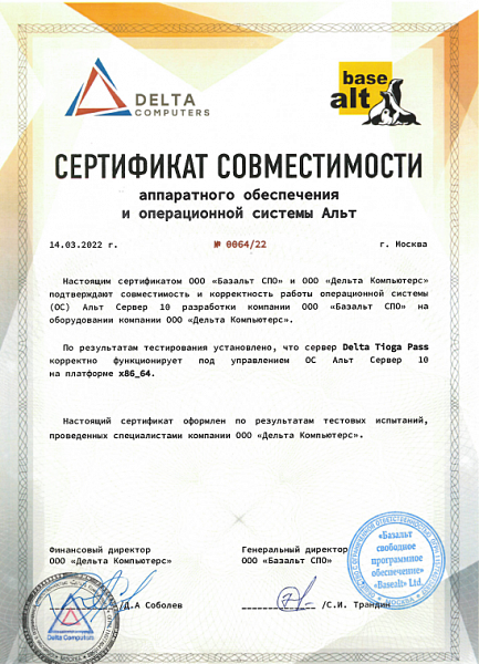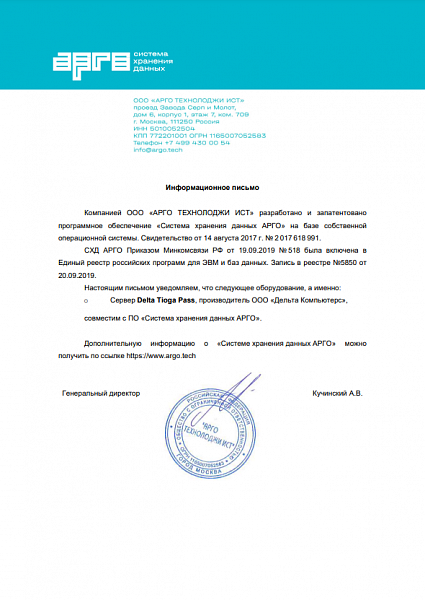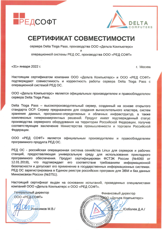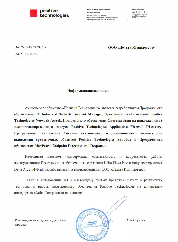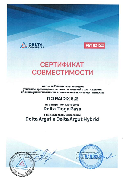 - Программное обеспечение RAIDIX 5.2 и сервер Delta Tioga Pass, а также Delta Argut и Delta Argut Hybrid