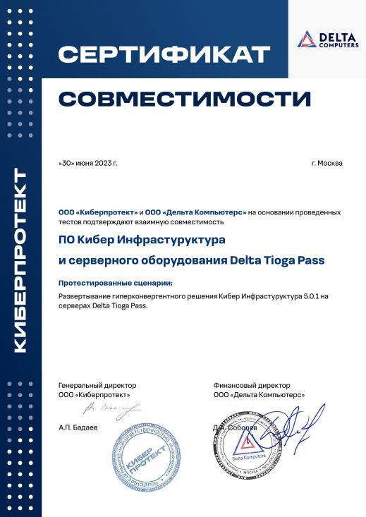 - Развертывание гиперконвергентного решения Кибер Инфраструктура 5.0.1 на серверах Delta Tioga Pass