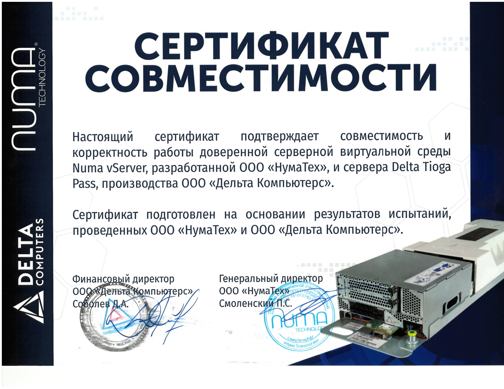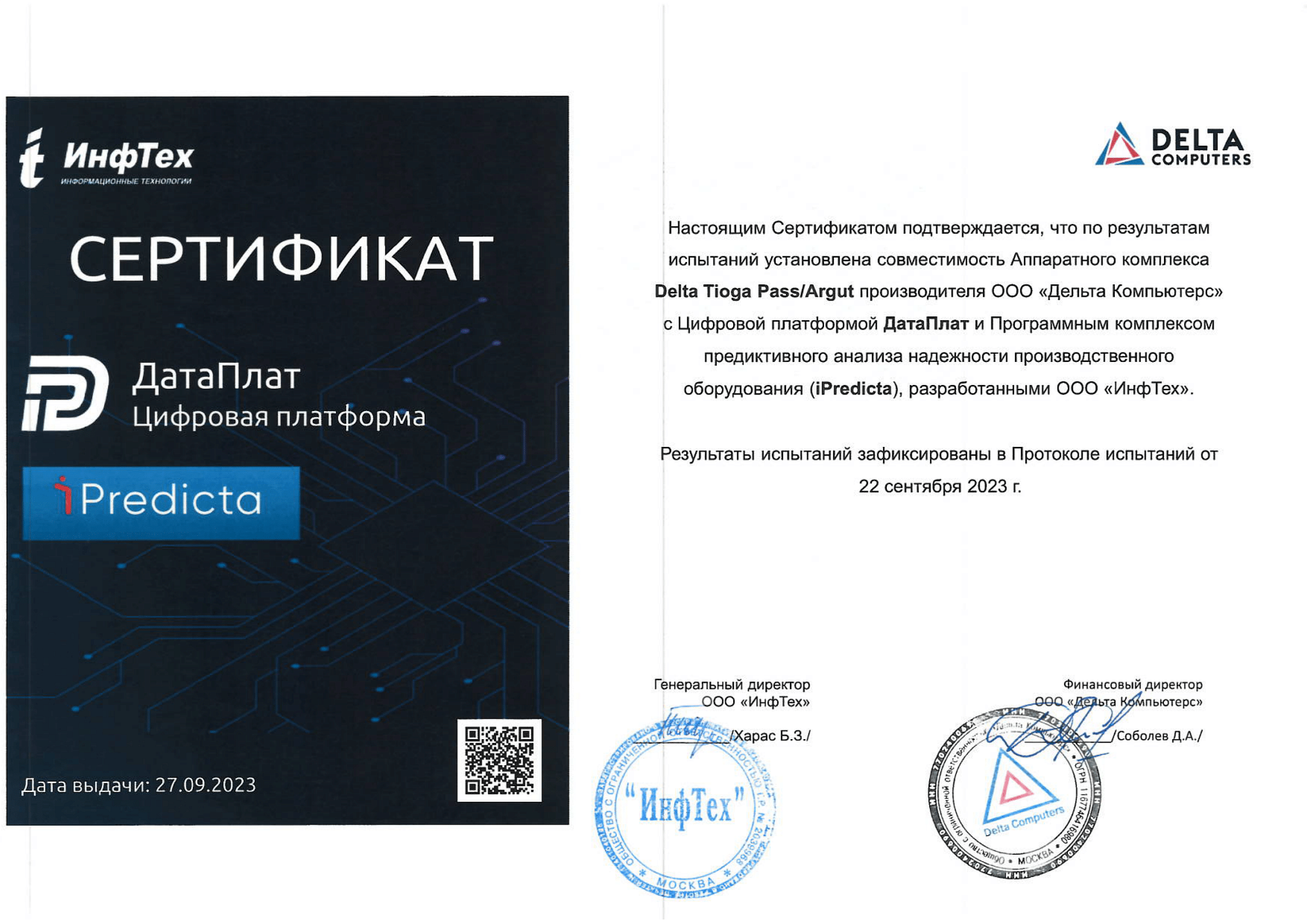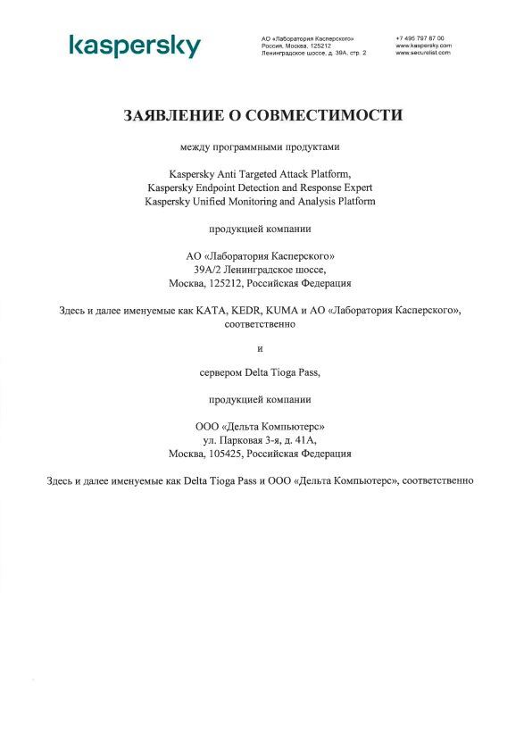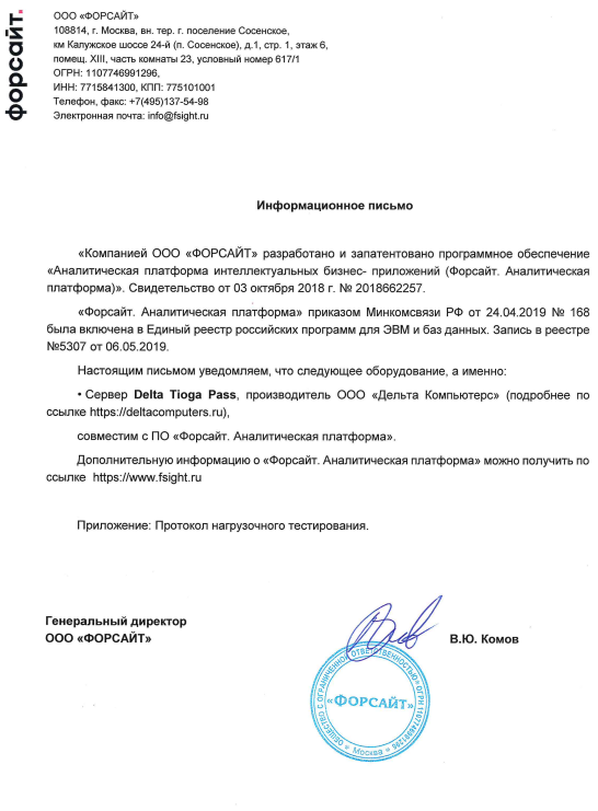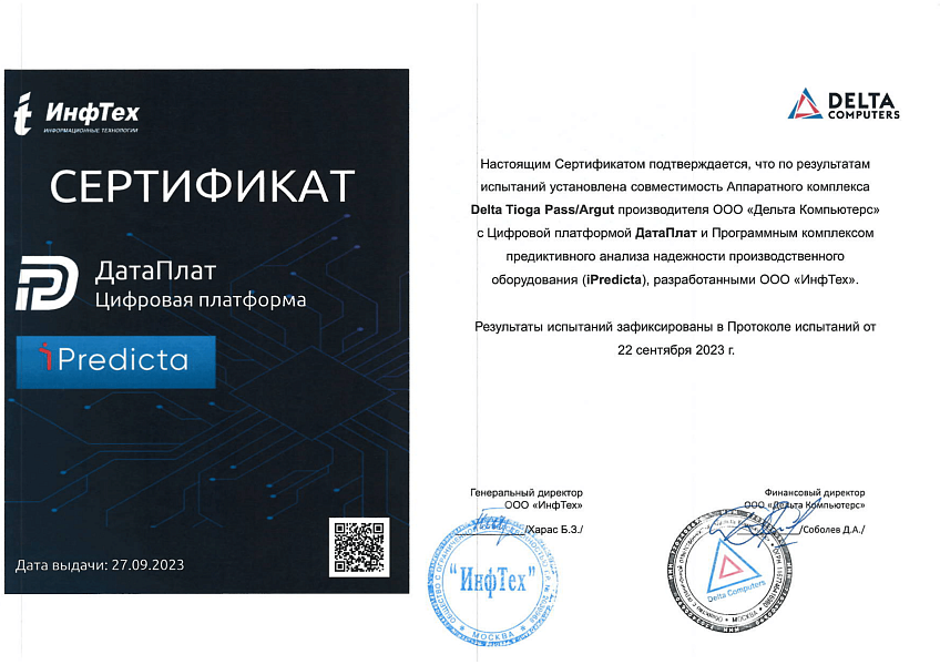 - Цифровая платформа ДатаПлат и Программный комплекс предиктивного анализа надежности производственного оборудования (iPredicta) и Сервер Delta Tioga Pass.