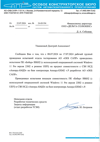 СЗИ НСД «Аккорд-АМДЗ» (с используемой ОС Windows 11 Pro)