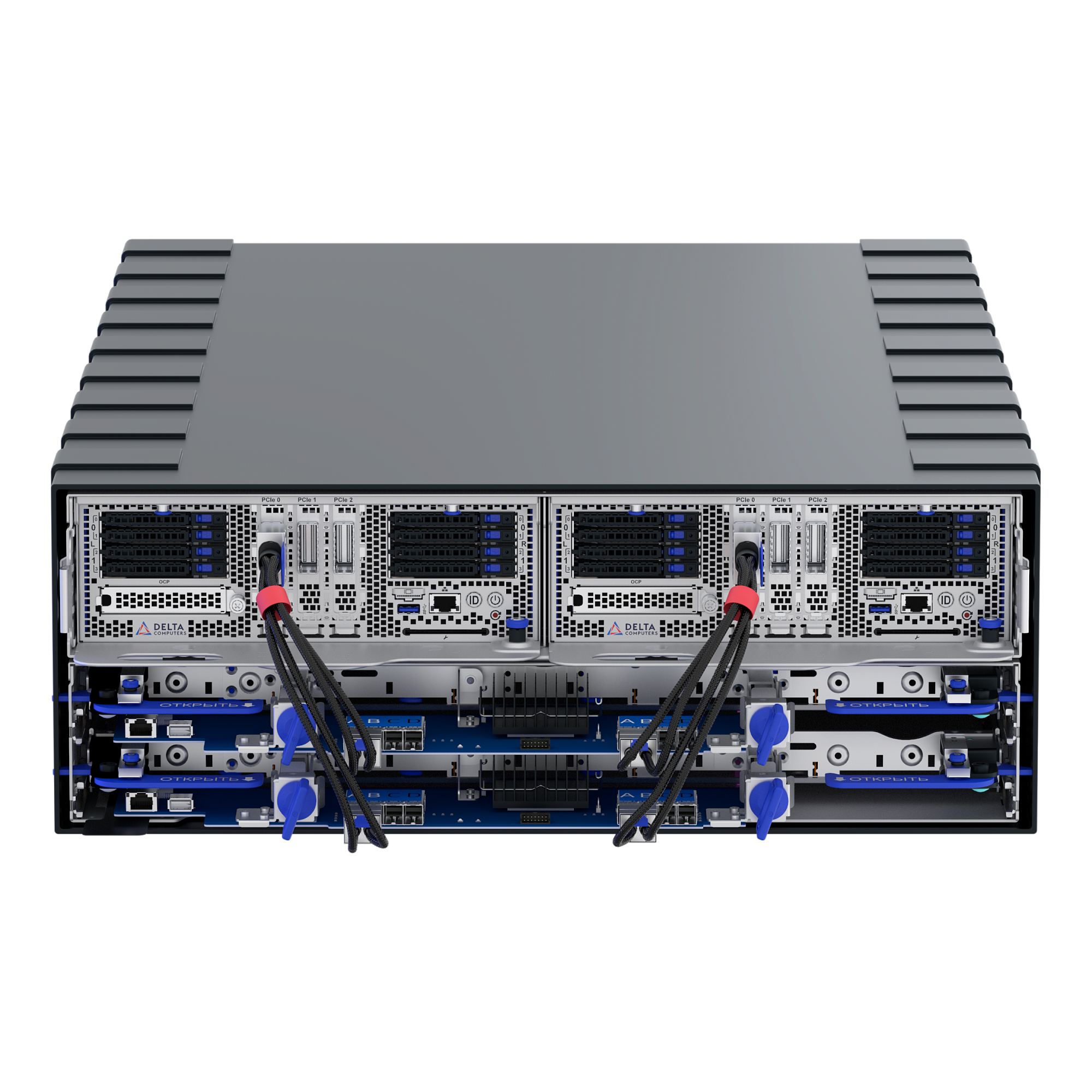 - Возможность установки до 120 шт. U.2 NVMe SSD Gen4 2,5” накопителей