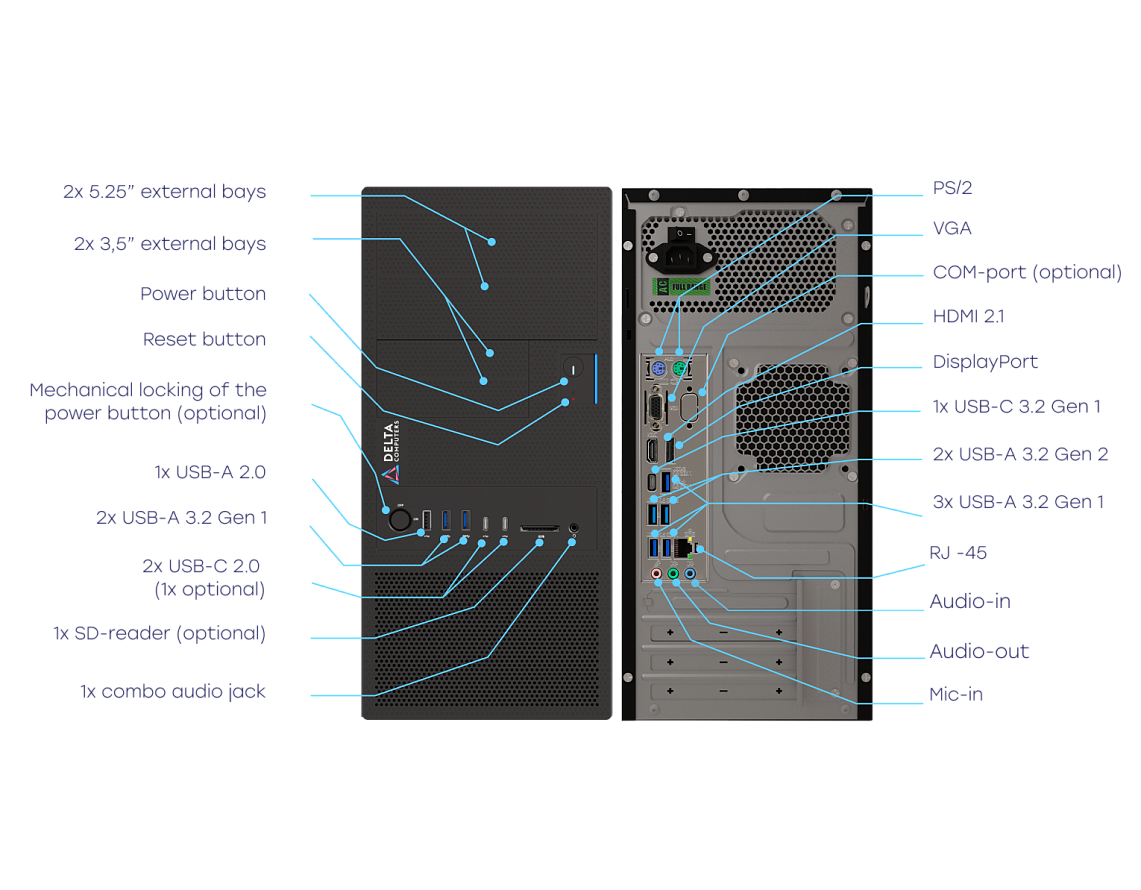 - External bays: 2x 5.25”, 2x 3.5”